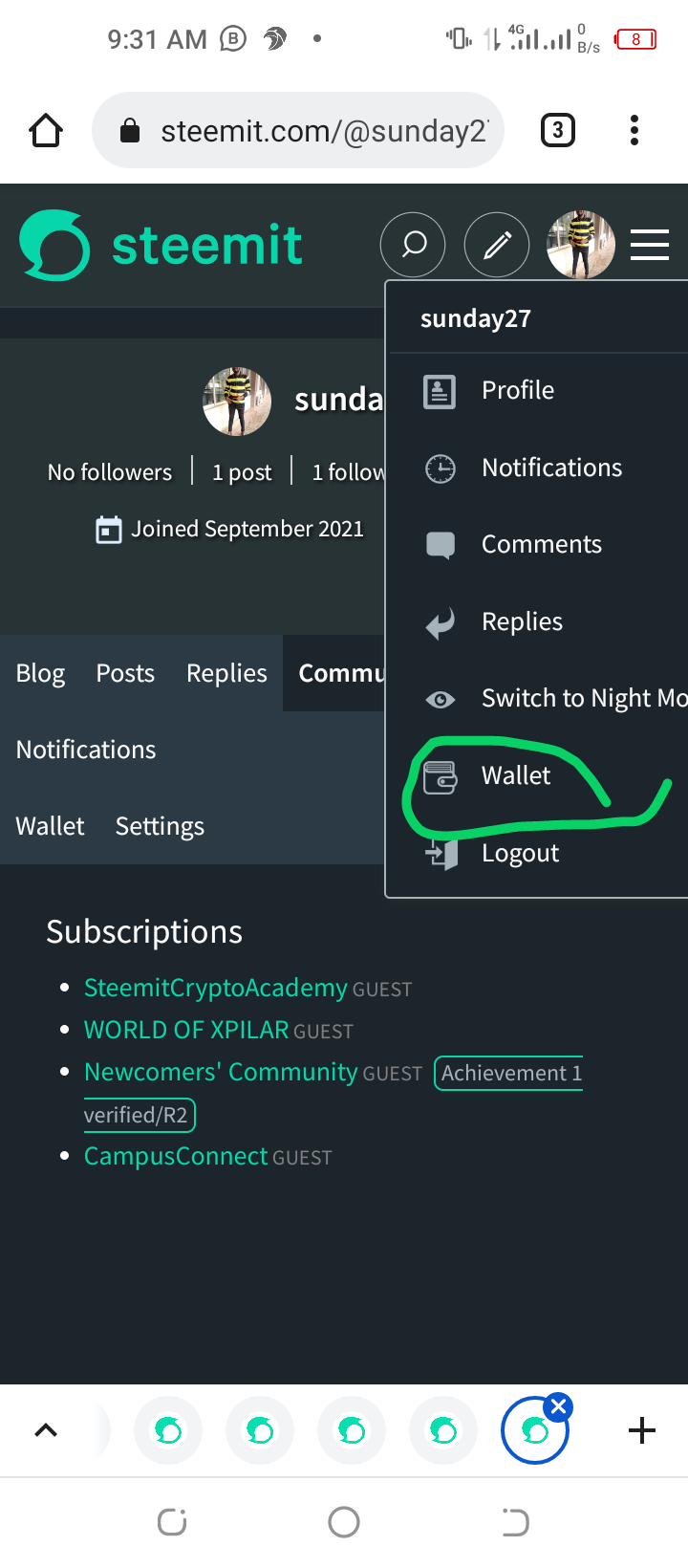 Here you click the option on the profile bar,click on wallet,then click on steem after which you would immediately see an option to power up.its illustrated below;