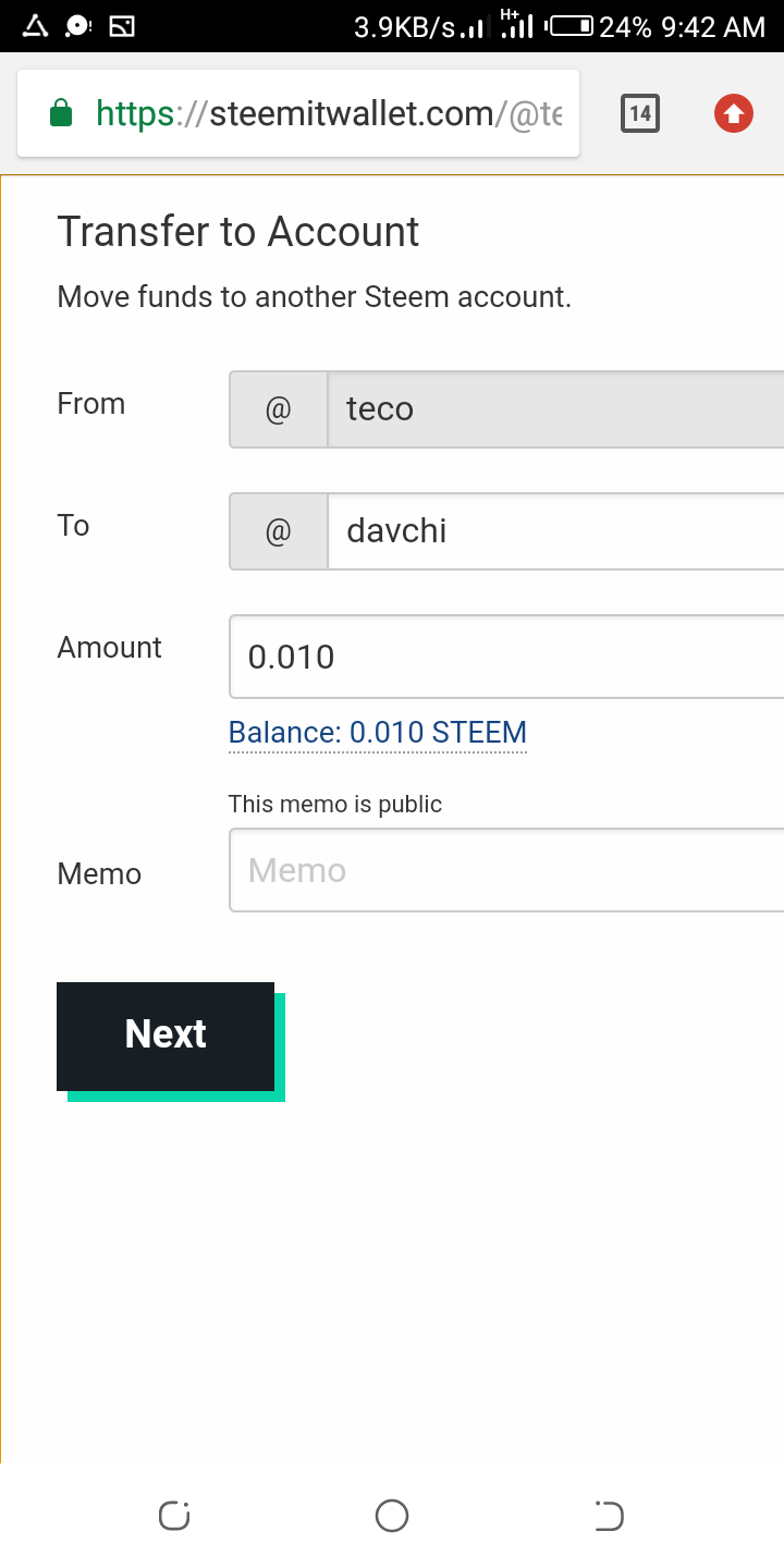 How to transfer steem to another account: