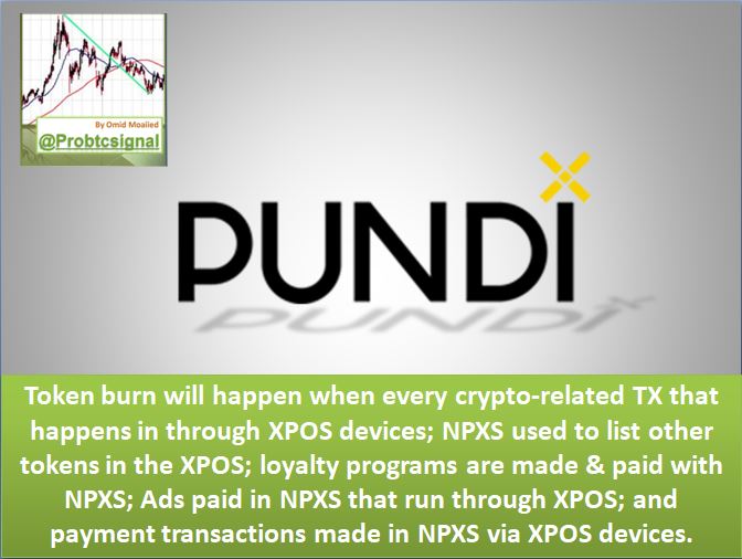 Token burn will happen when every crypto-related TX that happens in through XPOS devices; NPXS used to list other tokens in the XPOS; loyalty programs are made & paid with NPXS; Ads paid in NPXS that run through XPOS; and payment transactions made in NPXS via XPOS devices.