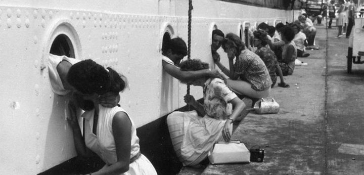 American soldiers saying goodbye to their loved ones before leaving for Egypt in 1963.
