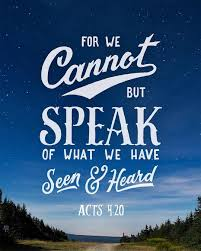 "For we cannot but speak the things which we have seen and heard"