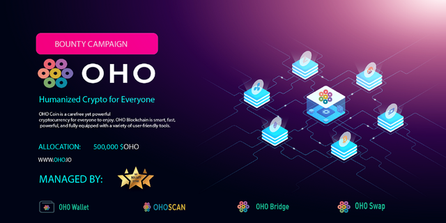 OHO BRIDGE: Easy swapping between OHO coin and BNB on 1:1. Everything done on OHO Blockchain is easy and simple because everything has been put in place to make Blockchain interesting and convenient.