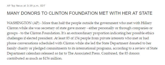 To Clinton’s chagrin, her Foundation’s shady dealings have already been extensively publicly examined. Most famously, in a 2015 book “Clinton Cash,” author Peter Schweizer showed how during Clinton’s years in government “the Clintons conducted or facilitated hundreds of large transactions (either as private citizens or government officials) with foreign governments, corporations and private financiers,” calling the profits going to the Clintons “staggering.”
