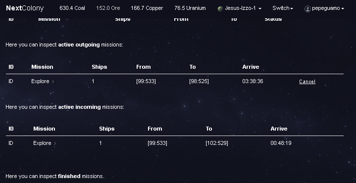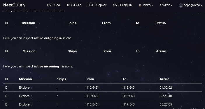 Here are the missions of today, I show you those I have done from each of my planet, in the first is on the planet Jesus-Izzo-1, where I have already done some beads and this time send 2 from him, as you can see and this half and returns from the trip.