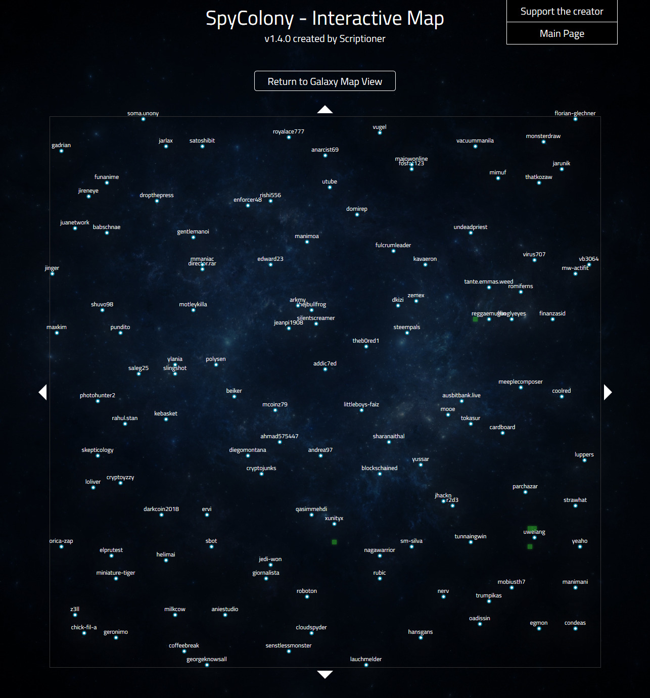 Finally, this day has come! Today I've released update 1.4.0 to SpyColony! I've added some important features to the tool - information about recently discovered planets and, most importantly, the interactive map of the entire galaxy! I hope that the new features will be useful for you!