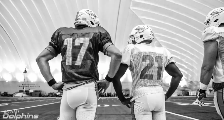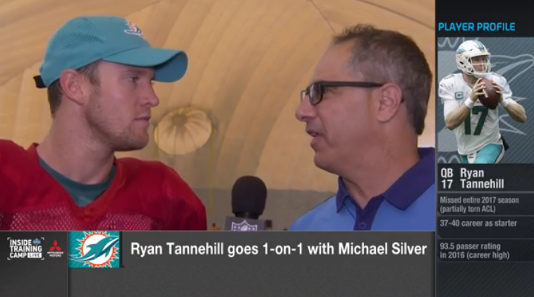Ryan Tannehill allied the NFL Networks Mike Silver after practice yesterday.