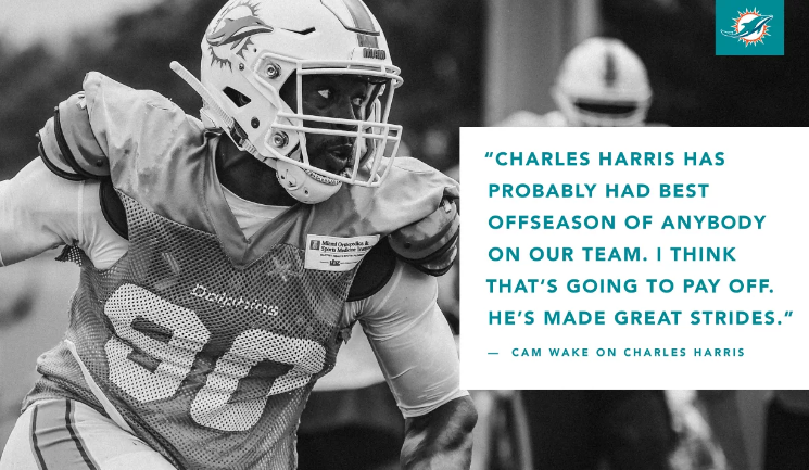 DE Charles Harris had the best offseason of any artiste upon the team according to Cam Wake.