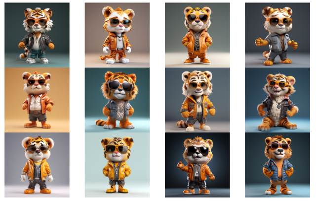 예를 들어 호랑이의 경우에는 위와 같이 각기 다른 캐릭터의 호랑이가 총 12개가 있구요, 다른 동물들의 경우에도 각기 고유한 이미지를 가진 다양한 12개의 캐릭터들로 구성이 되어 있습니다