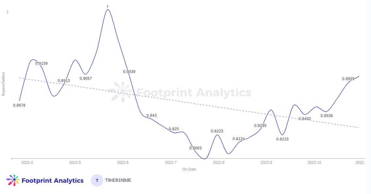 The ratio of buyers to sellers continues to shift upwards. In summer, the ratio severely favored buyers, driving down the prices of NFTs, but this began to re-balance in September and continued up in October.