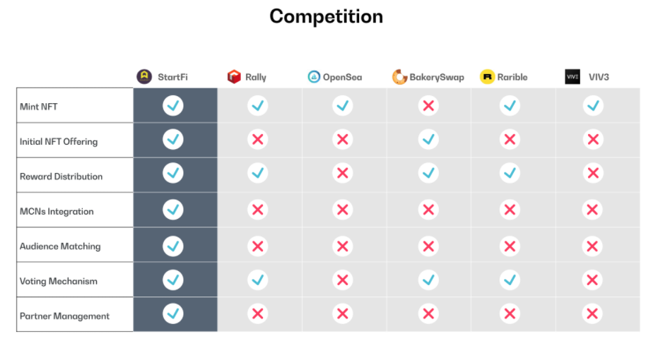 StartFi can be seen compared to other NFT platforms. Here StartFi is far superior in both technology and cost. Content creators can safely auction their works without having to depend on third parties.