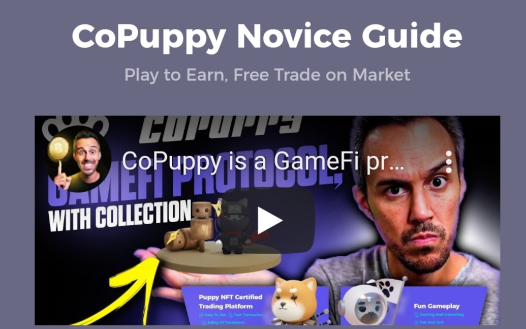 Copuppy is a blockchain -based investment service platform. Copuppy is the first live-beta DAPP on the NEO Blockchain. Copuppy is a decentralized investment service platform for cryptocurrency holders. Through the Copuppy platform, people have the opportunity to use their capital to support projects that they believe in, and to get a return on their investment. Copuppy aims to help investors of all levels. Whether you are a new investor or an experienced one, you can always get your return on investment through Copuppy .