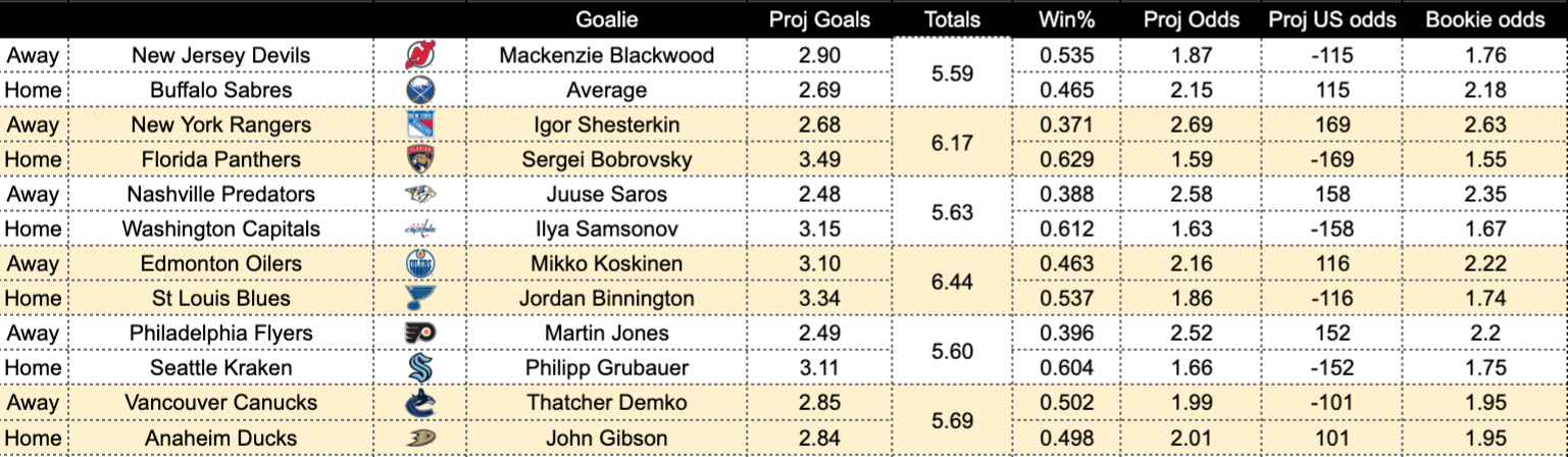 A lot of games were postponed in last couple of days and it seems that NHL is back. Based on our betting model projections, the best bet should be on Seattle Kraken against Philadelphia Flyers.
