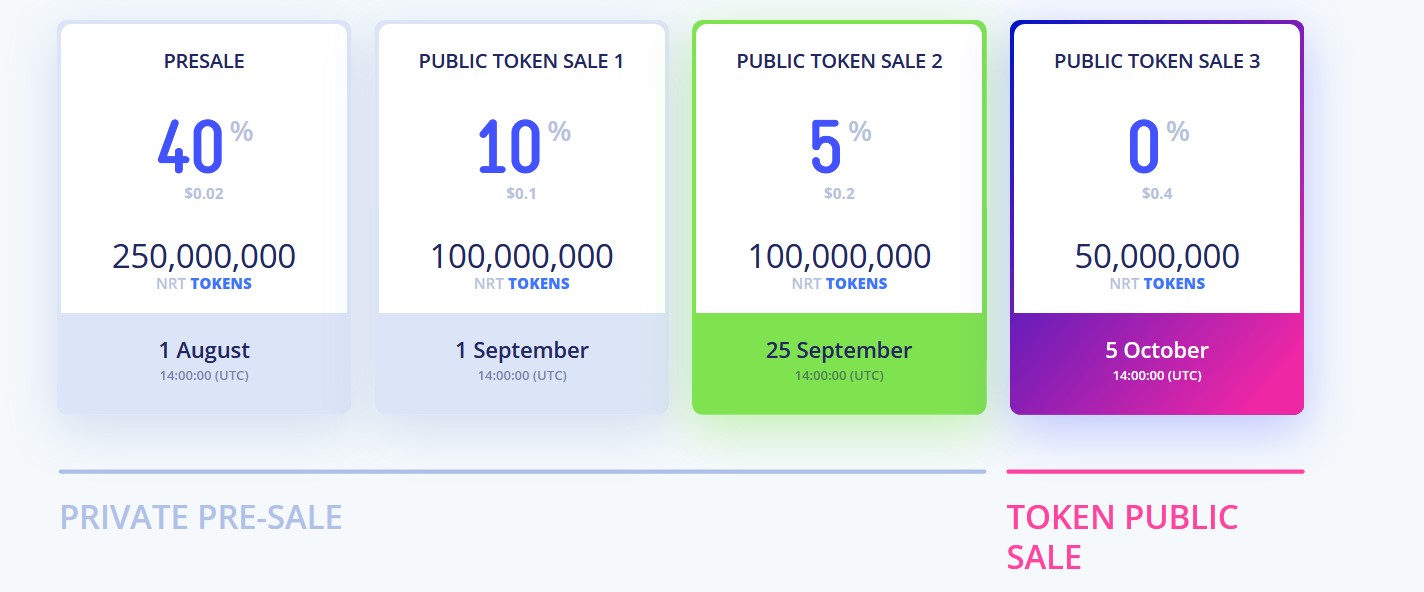 Toplamda 1 milyar NRT tokenı olacaktır. Projenin cüzdanı üzerinde de Atomic Swap olarak ifade edilen blockchain ağı üzerinde kolayca hrhangi bir aracıya ihtiyaç duymadan swap işlemleri gerçekleştirilebilecektir.