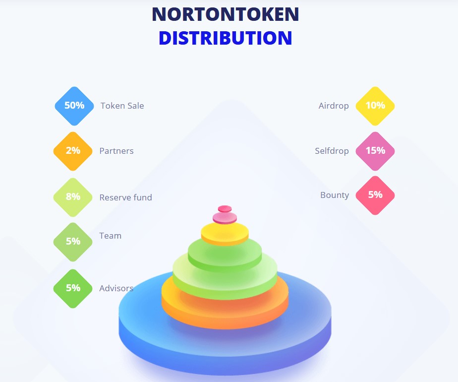 Projenin tokenı ERC 20 standardında bulunan Norton Coin’dir ve NRT simgesiyle blockchain ağında yer alacaktır. Platform bünyesindeji işlem ücretlerinin ödenmesinde kullanılabileceği gibi token satışlarından sonra kripto para borsaları üzerinde al – sat işlemleri yapılabilecektir.