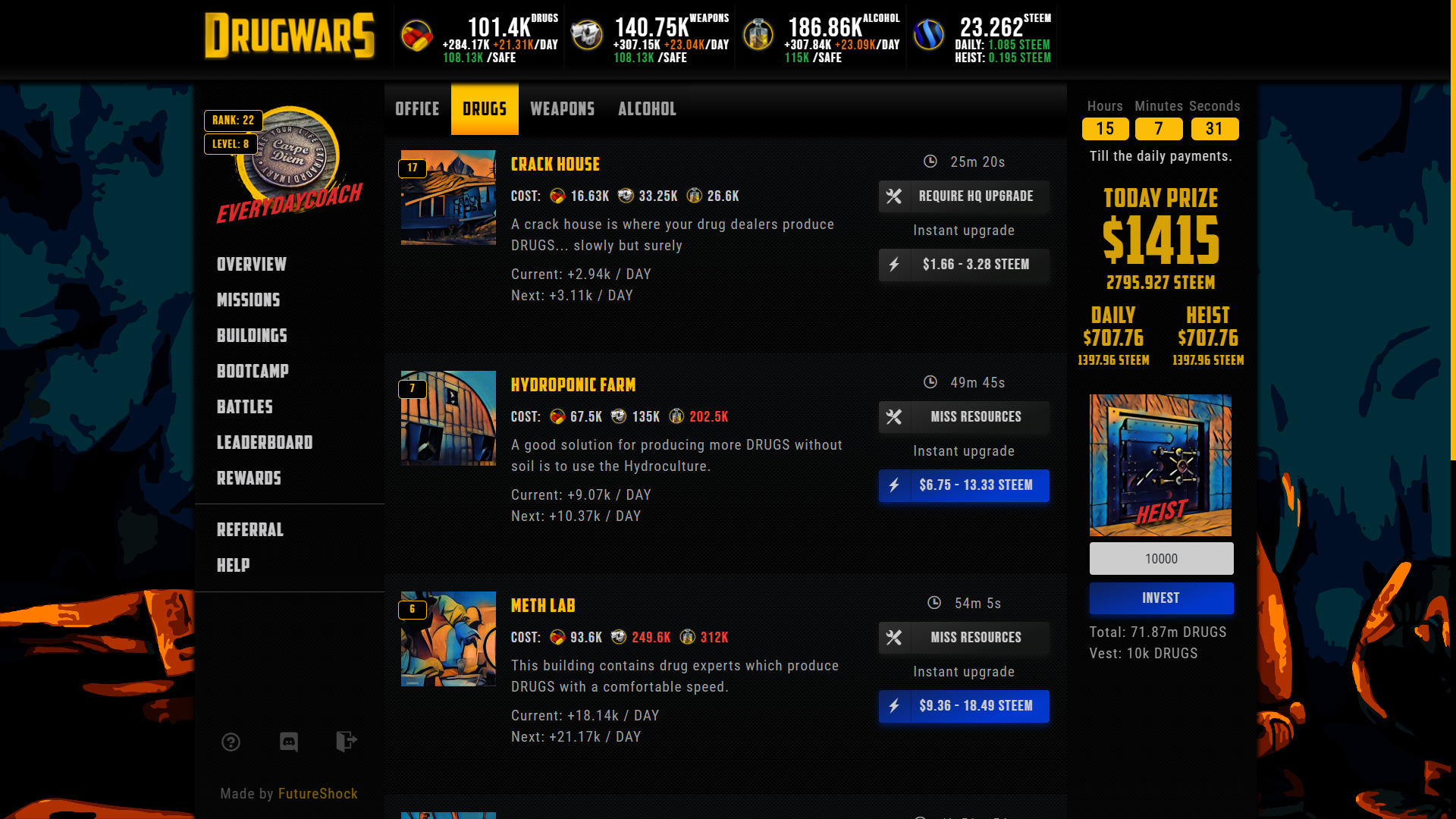 Thank you for taking part in the early access of Drugwars.