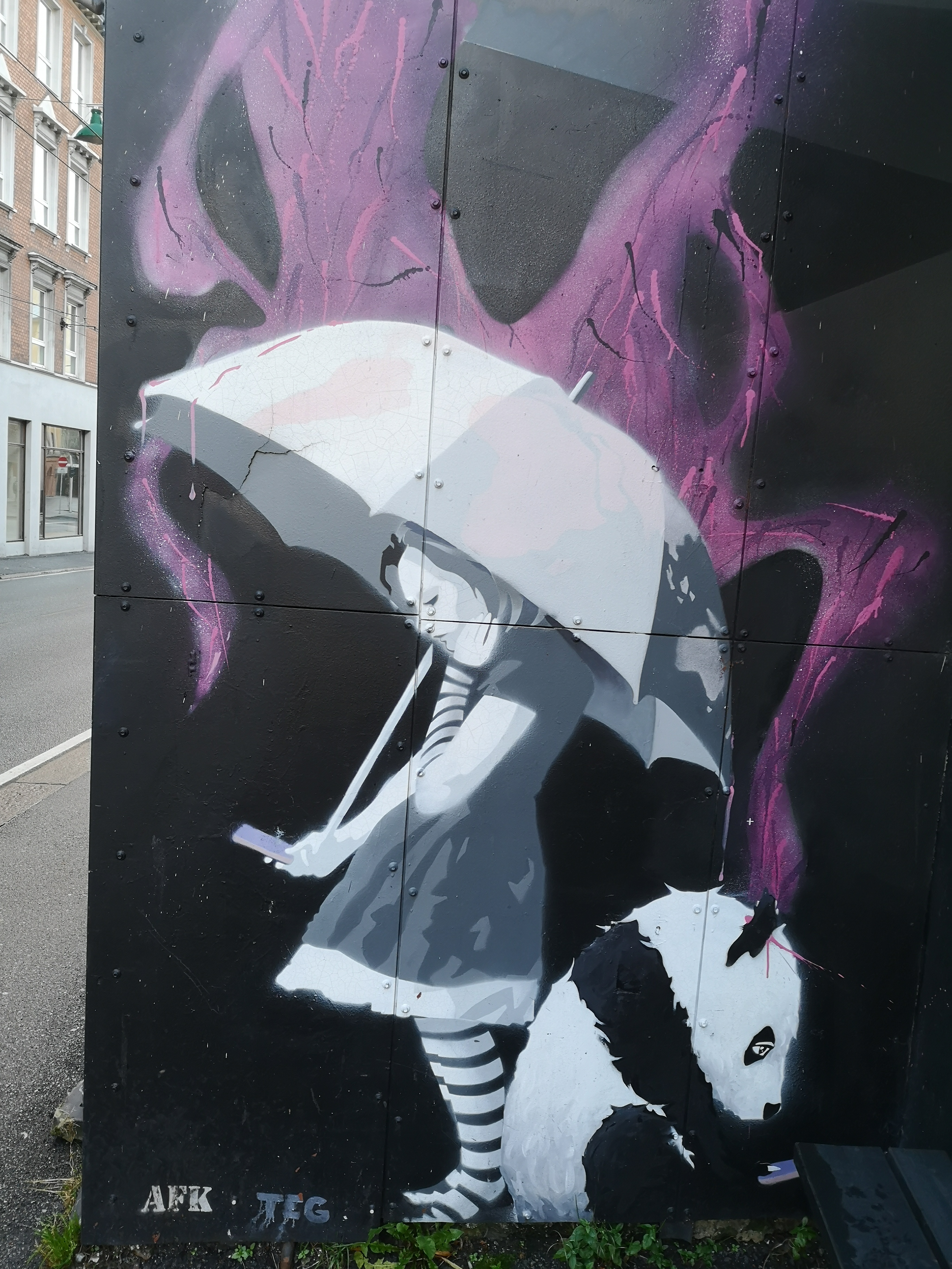 I never heard of this group so I today I looked up their work. Not only this paining, but a lot of their street work includes purple. AFK stands for "Away from Keyboard." This is brilliant and the way to bring a city back to life. I live in Seoul and a lot of projects similar to this are going on. I really like it.