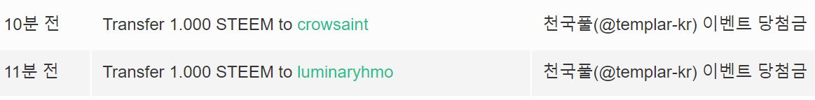 두 분에게는 스팀잇 지갑(Wallet)으로 1스팀씩 보내드렸습니다.