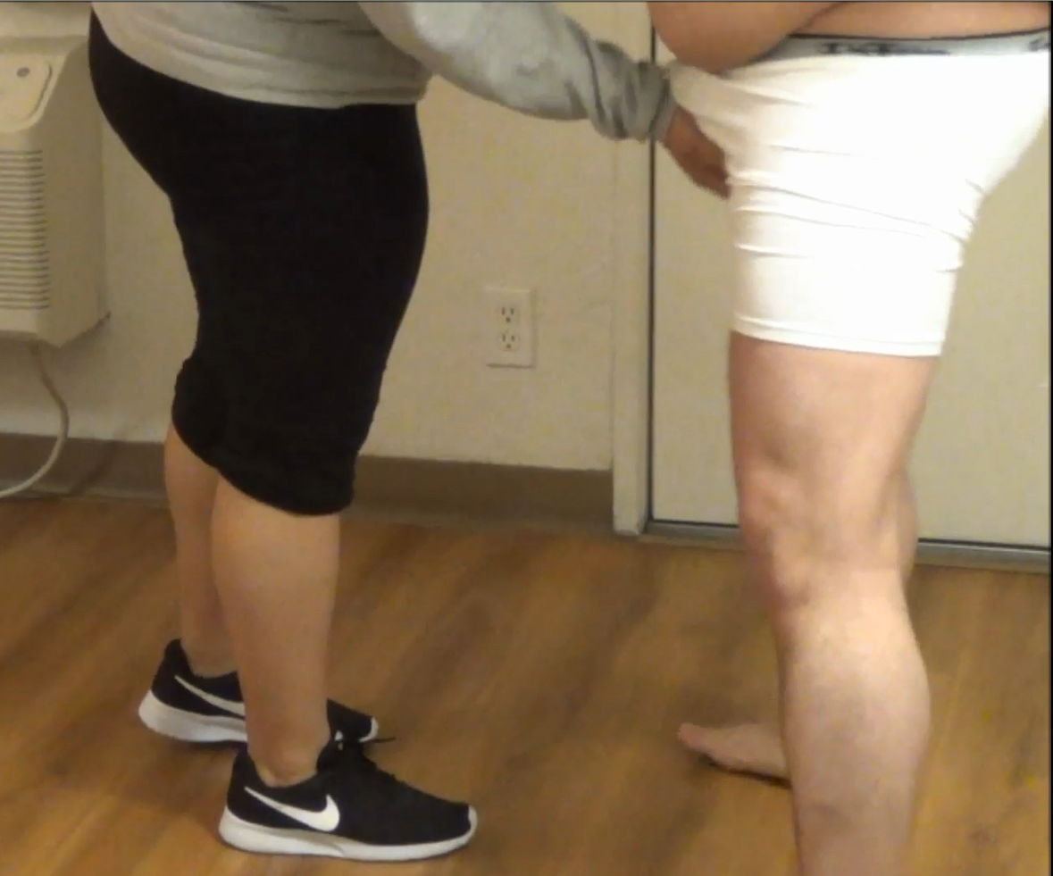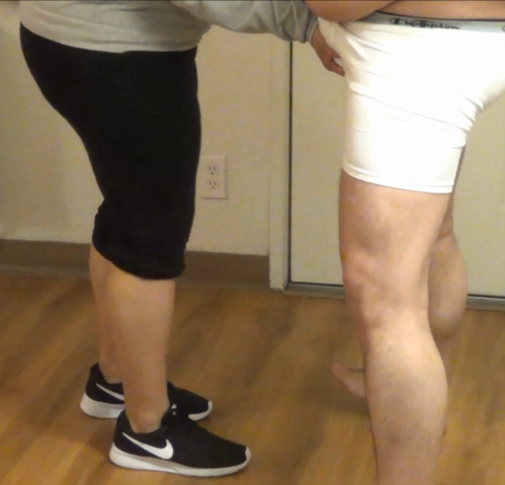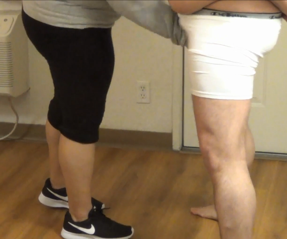 This is our first session my cousin wanted to learn how to grab and squeeze a man balls. I stand there in front of her my arms behind my back she starts to grab and squeeze my groin area on the third picture you can see my nut trying to pop out through my underwear my cousin sure learns fast how to take down a man.