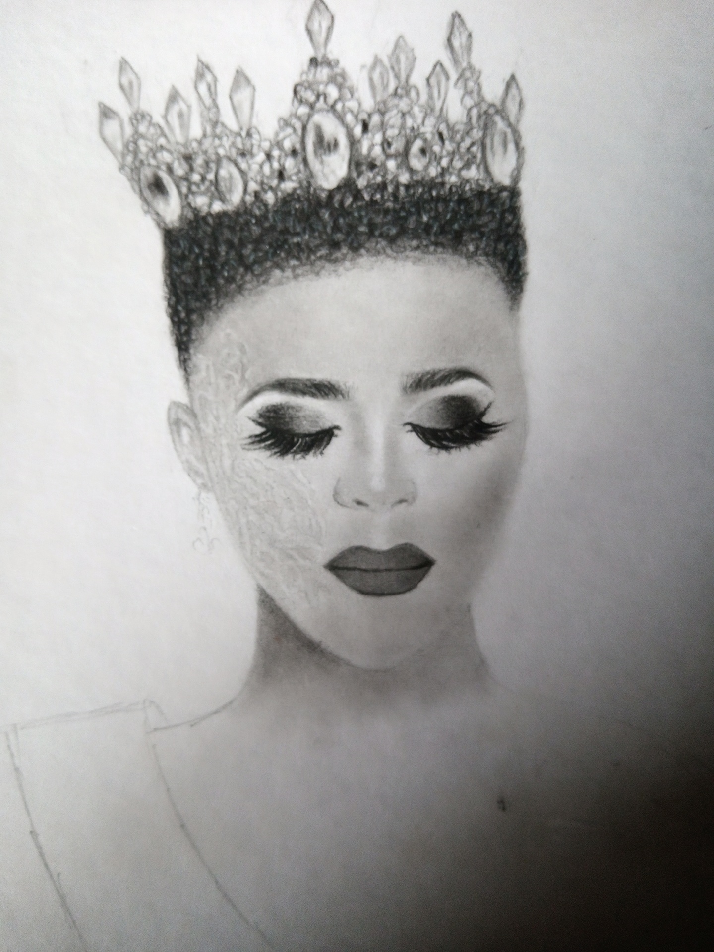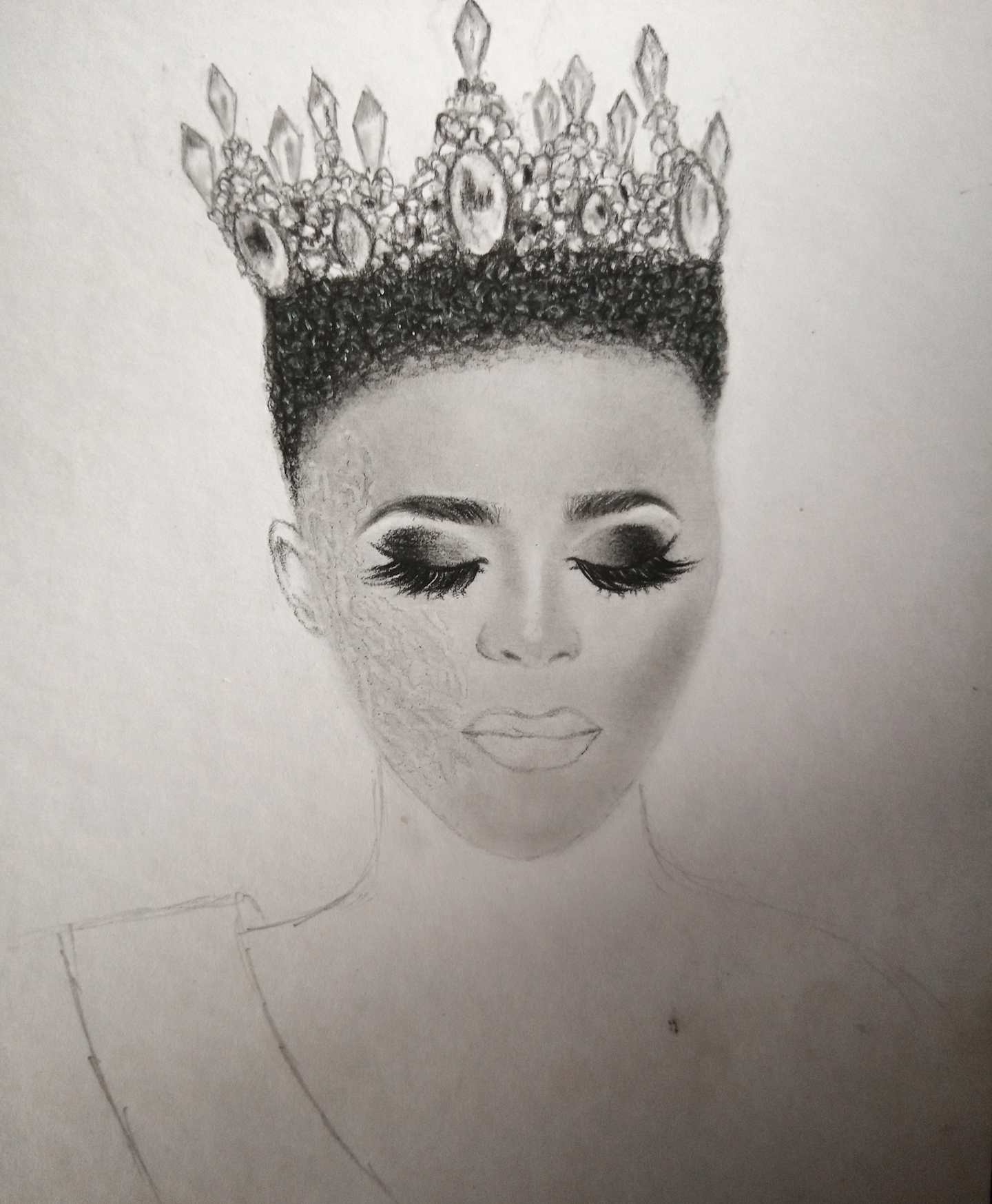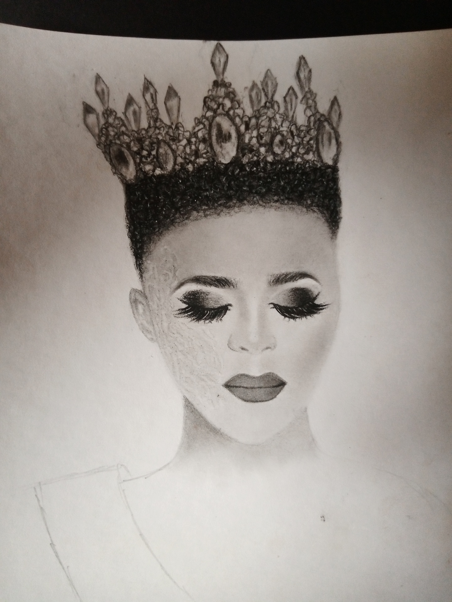 The scar in this drawing not only represents the physical scar but the emotional scar and psychological scar. No matter the scar we all face, we should always remember we are kings and queens. That is what the crown signifies. And as long as we carry ourselves with dignity and carry ourselves as royals we are, people around us we begin to see us as kings and queens and that very scar that once was termed as ugly will be termed as Beautiful.