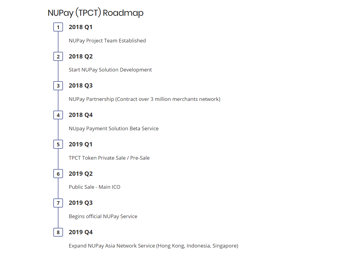 TPCT, NUPay’s brand token, functions as a medium of exchange and a store of value that can be spent and collected, credited, or accumulated through the NUPay Payment System. The NUPay system, spanning both on- and offline markets, will allow the use of TPCT tokens and other major crypto coins, along with reward points and vouchers. Promoting everyday payment in cryptocurrencies, increased TPCT’s utility and practicality will enable its function not only as a means of payment but also as a valuable asset.