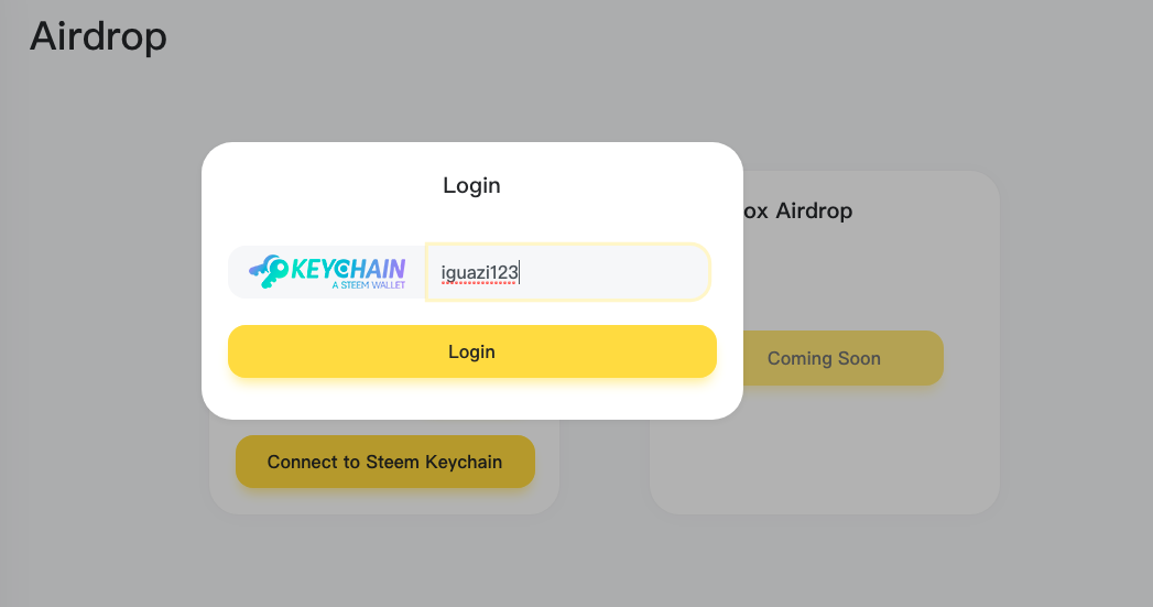 3、Click airdrop , and connect to 「KeyChain」steem wallet