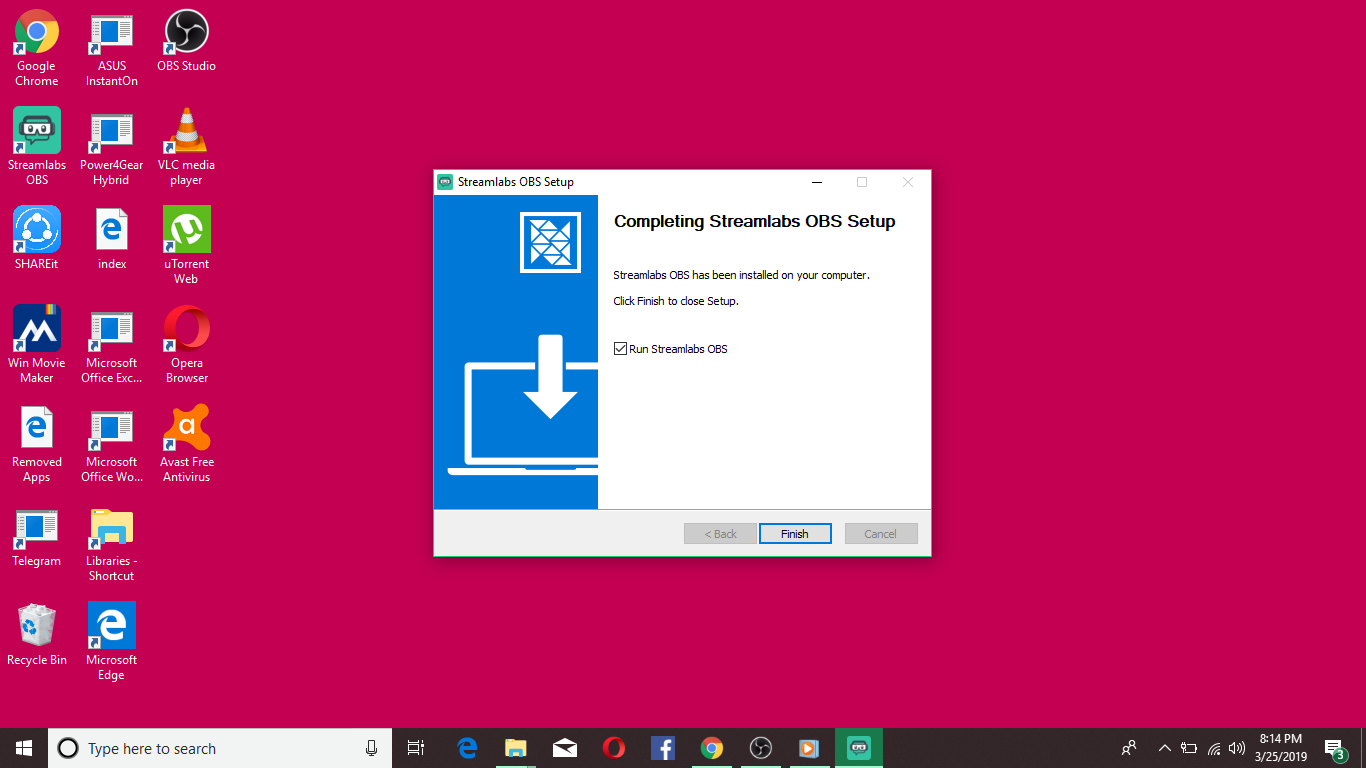 Step 3 You will see on your computer like this " Completing Streamlabs OBS Setup" then click finished.