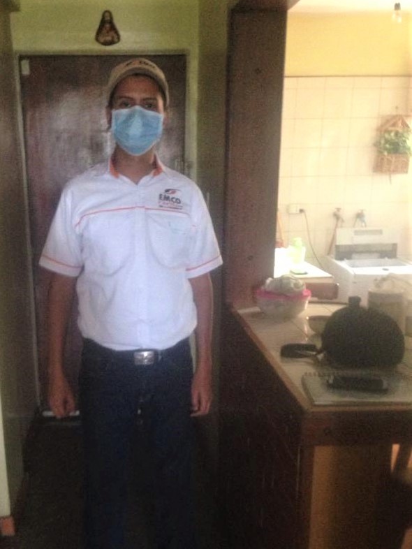 Mi hijo Eli José listo para salir a comprar alimentos.