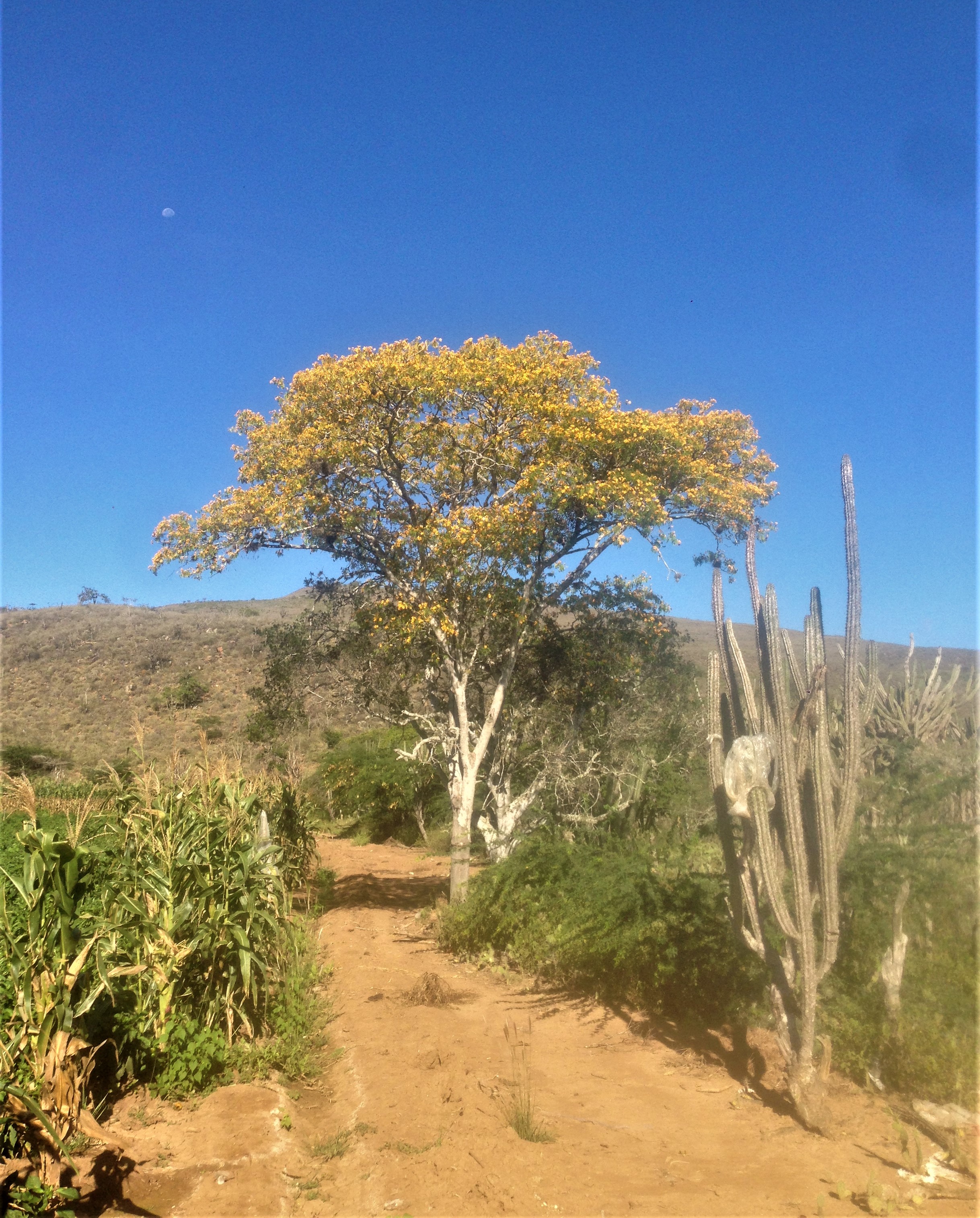 Increíble el contraste: A la izquierda, un sembradío de maíz. A la derecha, el bioma semiárido intacto.