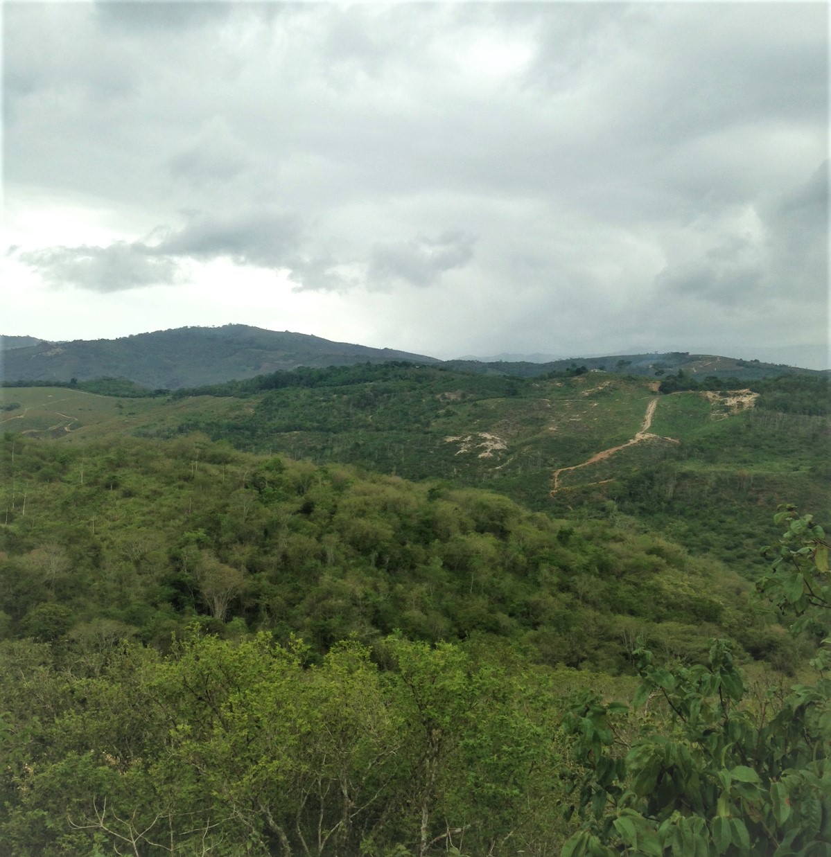 A la distancia, se observan vías de penetración agrícola y áreas deforestadas, para sembradíos de piña.