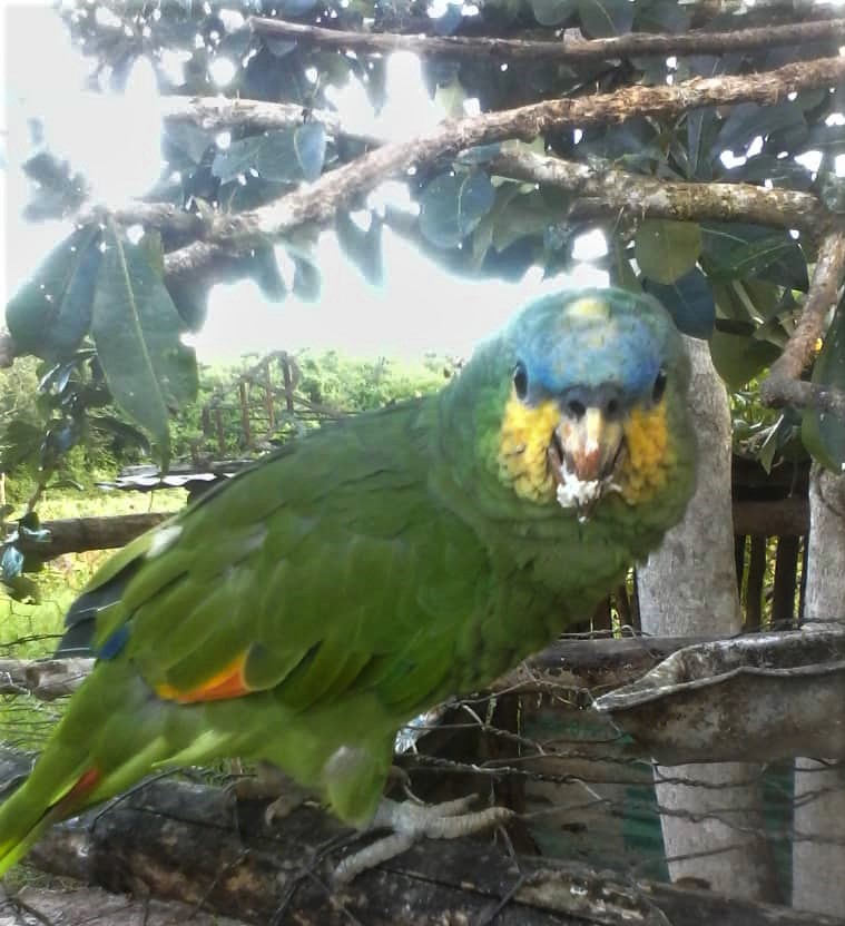 Loro cabeza amarilla (Amazona oratrix), creación maravillosa de la naturalea, que se rinde, de manera increible ante la mano del hombre, mediante un proceso de domesticación, que incluye cambios en la dieta del animal.