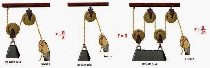 A simple pulley consists of a wheel and a rope above it. When pulling down one end of the rope, the weight of the other end is lifted. A double pulley has two wheels; You can lift twice the load with the same effort.