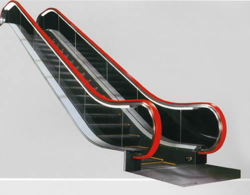 An escalator is a moving staircase. The steps in sections circulate between a driving wheel in the upper part and a return wheel in the lower part. An electric motor starts the driving wheel. The handrail moves at the same speed as the steps.
