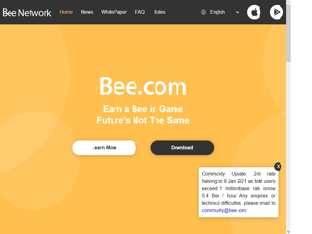 Early Bee Network players will have the advantage of earning more Bee, as the base rate as a miner will be reduced by 50% from 1.6 -> 0.8 -> 0.4 -> 0.2 -> 0.1 -> 0 Bee per hour when the base total users grow to 100000, 1 million, 10 million, 100 million and one billion. Therefore, it is always important to start now before the base rate is cut in half.