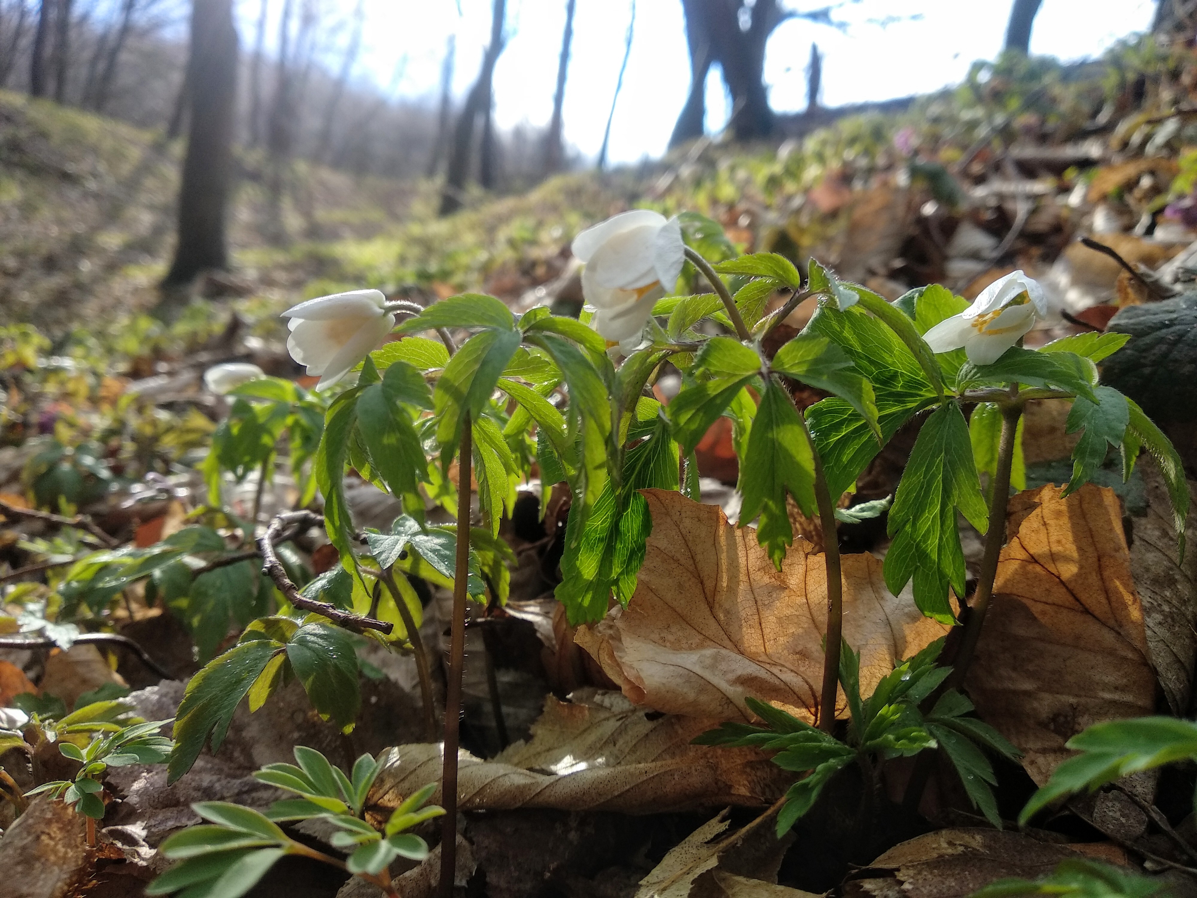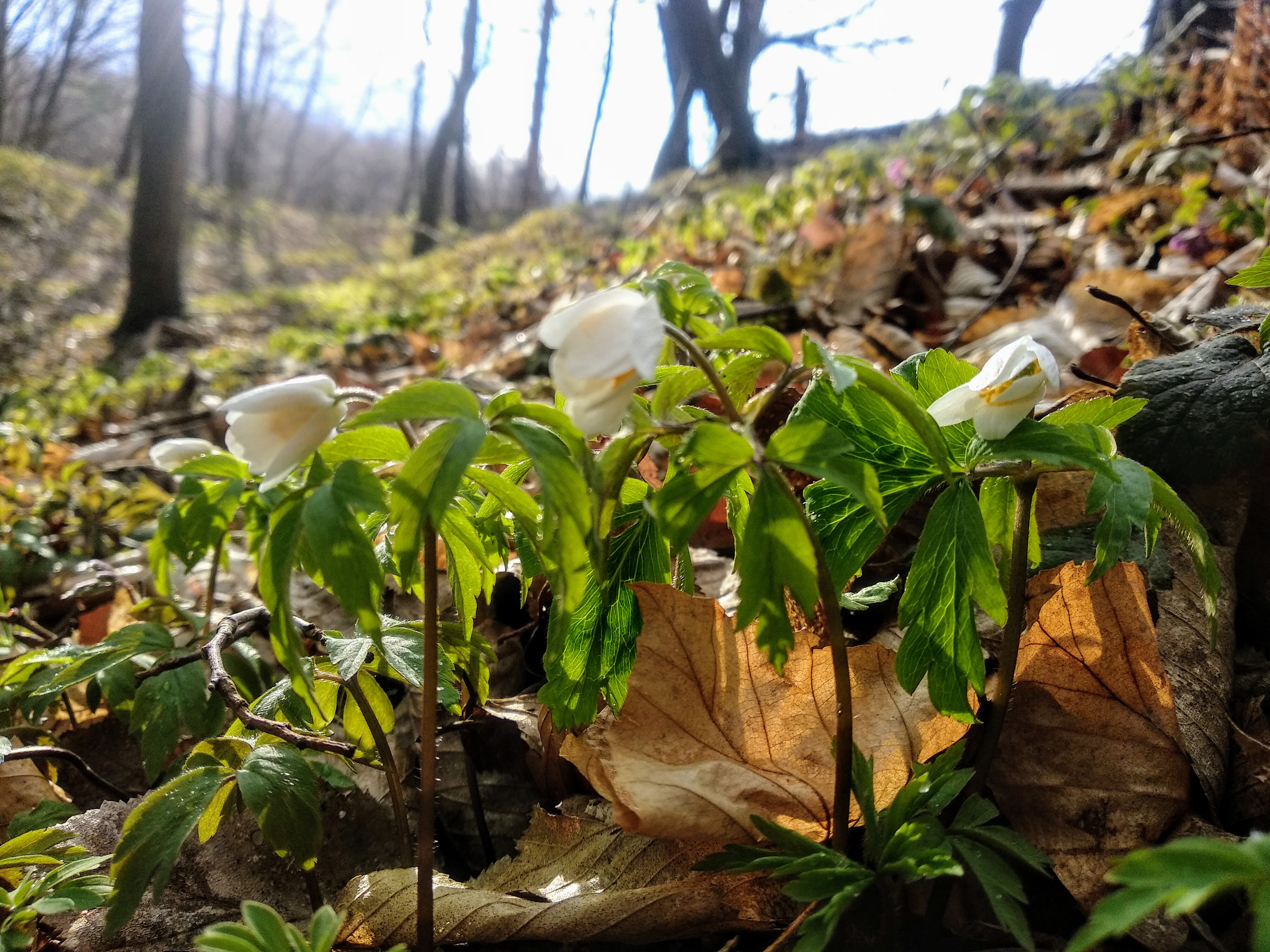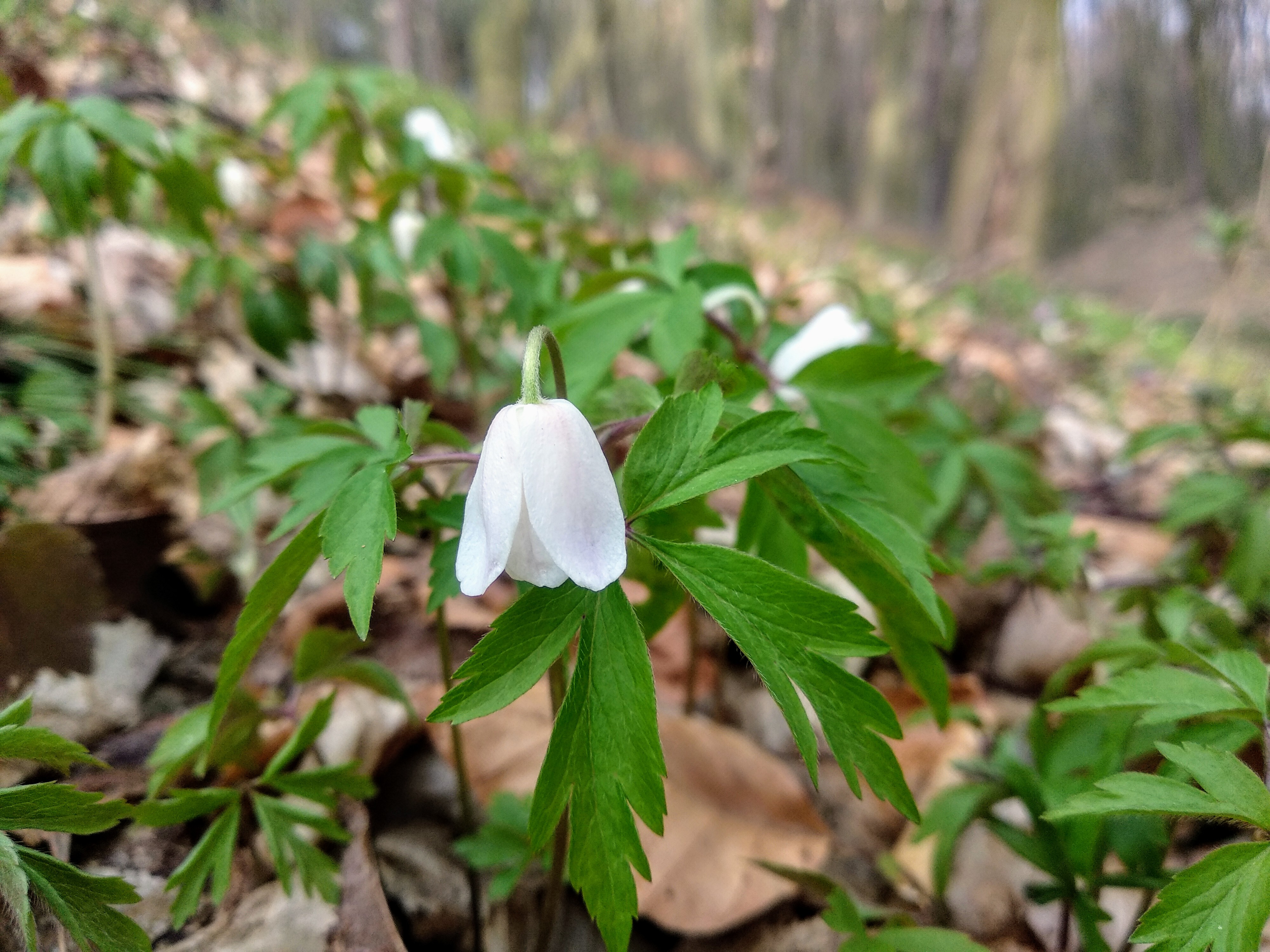 I went for a walk in the woods and saw the first flowers of the anemone. They bent and lowered their heads, as people do when they are cold.