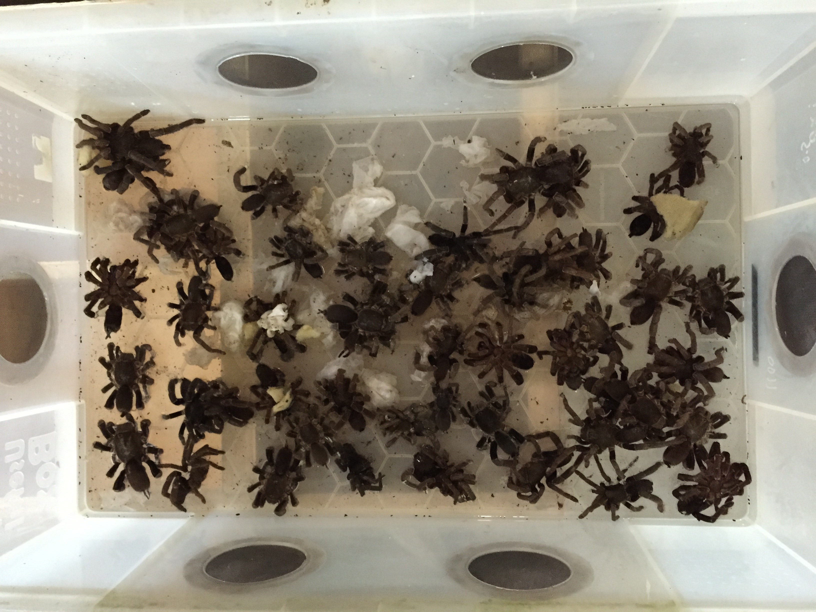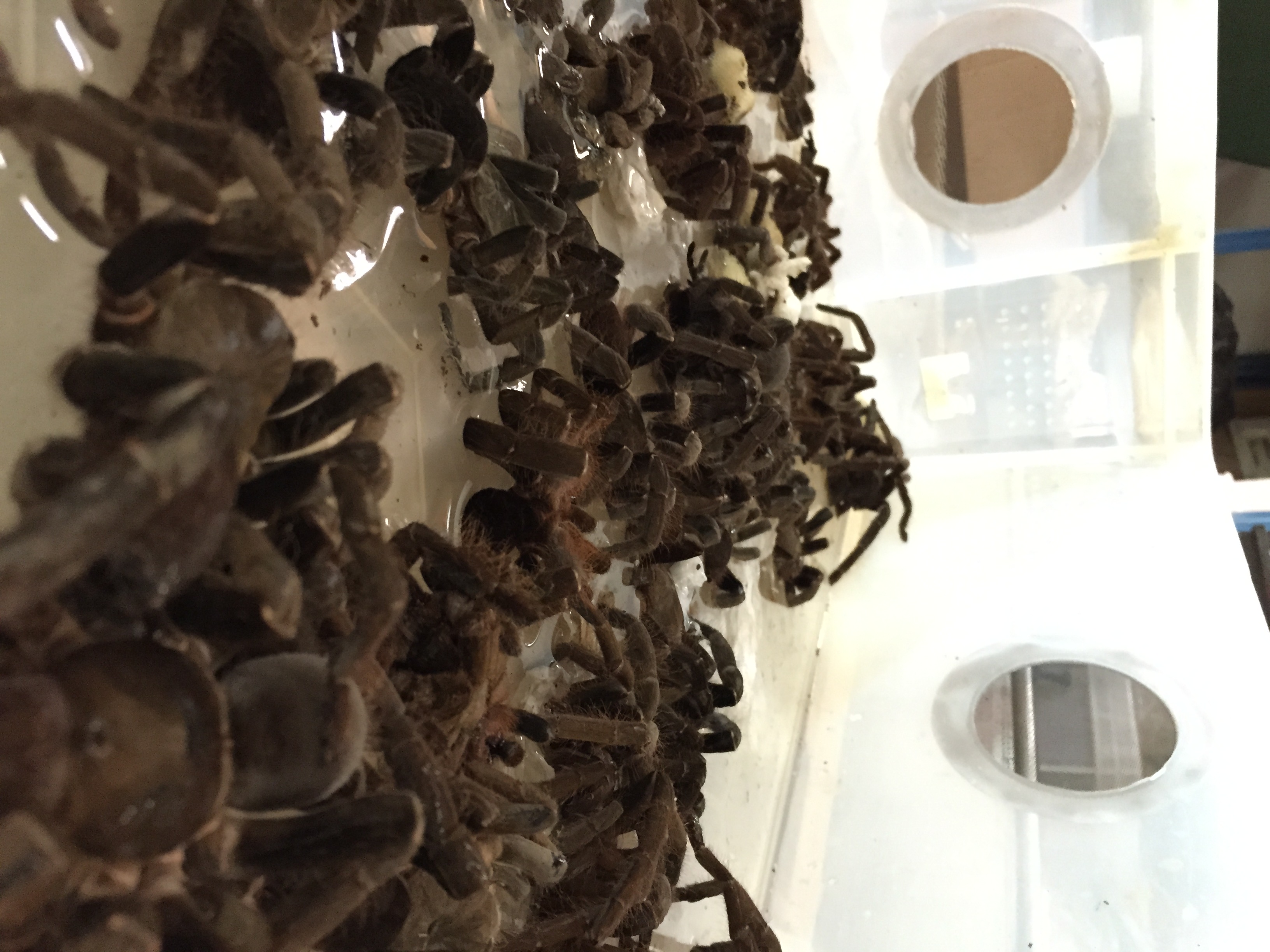 All the Tarantulas you see here had died in transit. we didn't know for sure but from what I recall was that the shipment spent a long time waiting to be cleared by customs officials which we believed caused them to perish costing My boss a lot of money