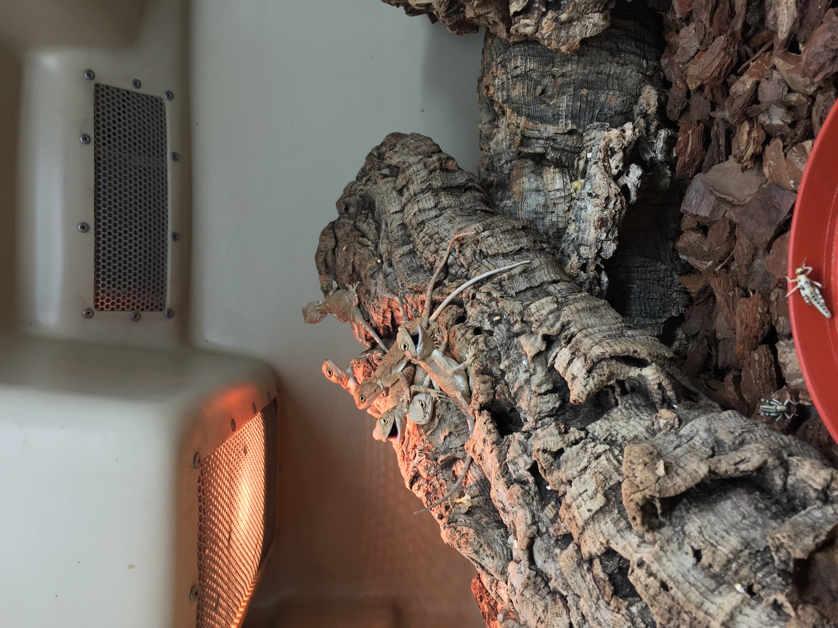 Some happy looking Geckos resting below the heat lamp