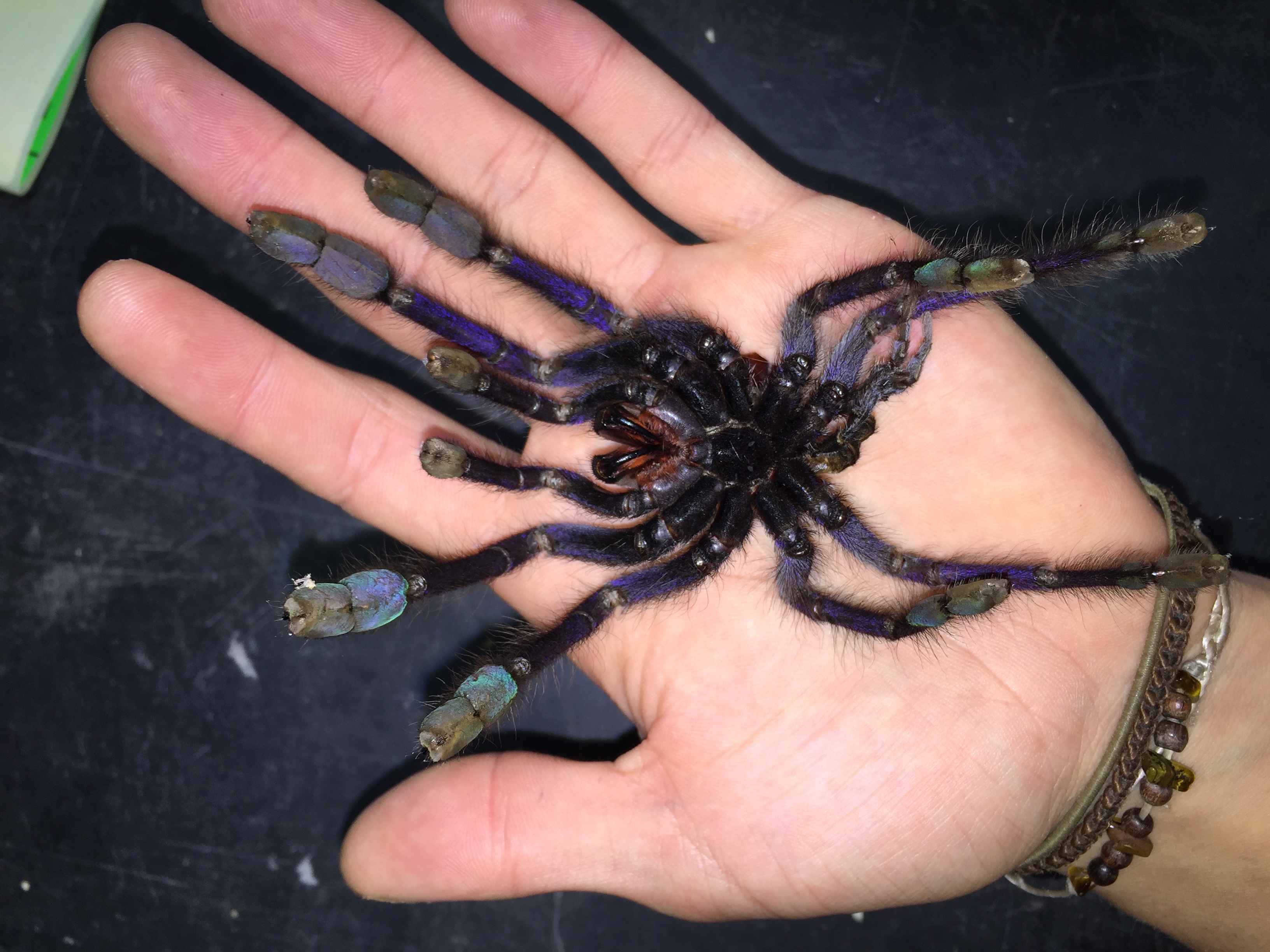 While some like this purple baboon Tarantula, not so much! (Don't worry, that's just a shed)