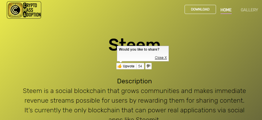 Website: https://www.crypto-mass-adoption.com/weapons/steem/index.html