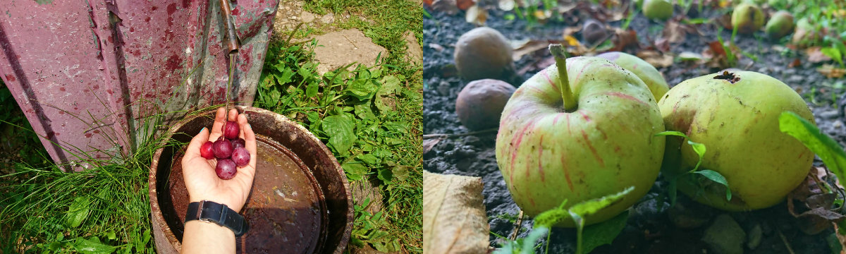 Because I couldn’t finish the harvesting session without something fresh and sweet for dessert, I stopped and picked up some green apples and red mirabelles.