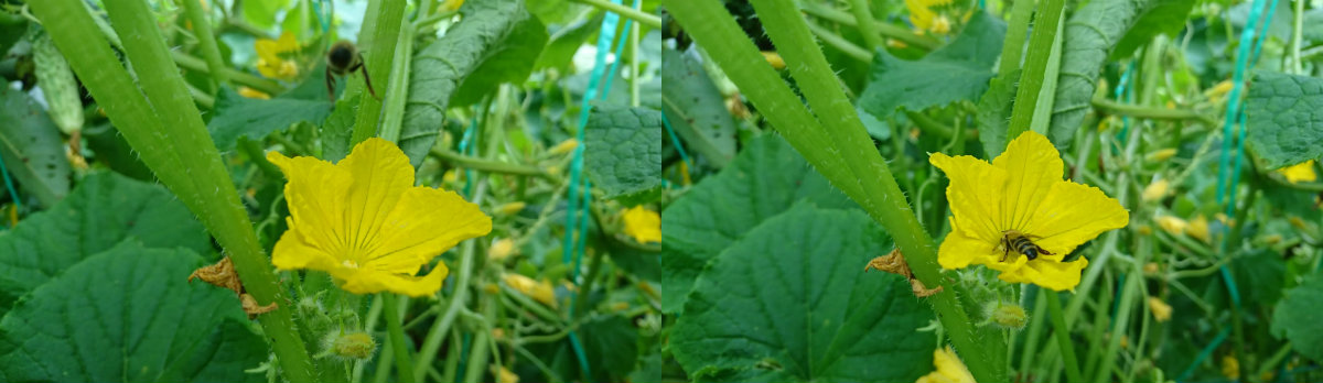 I started with the back of the garden where I gathered crispy cucumbers and admired the bees that pollinated the flowers.