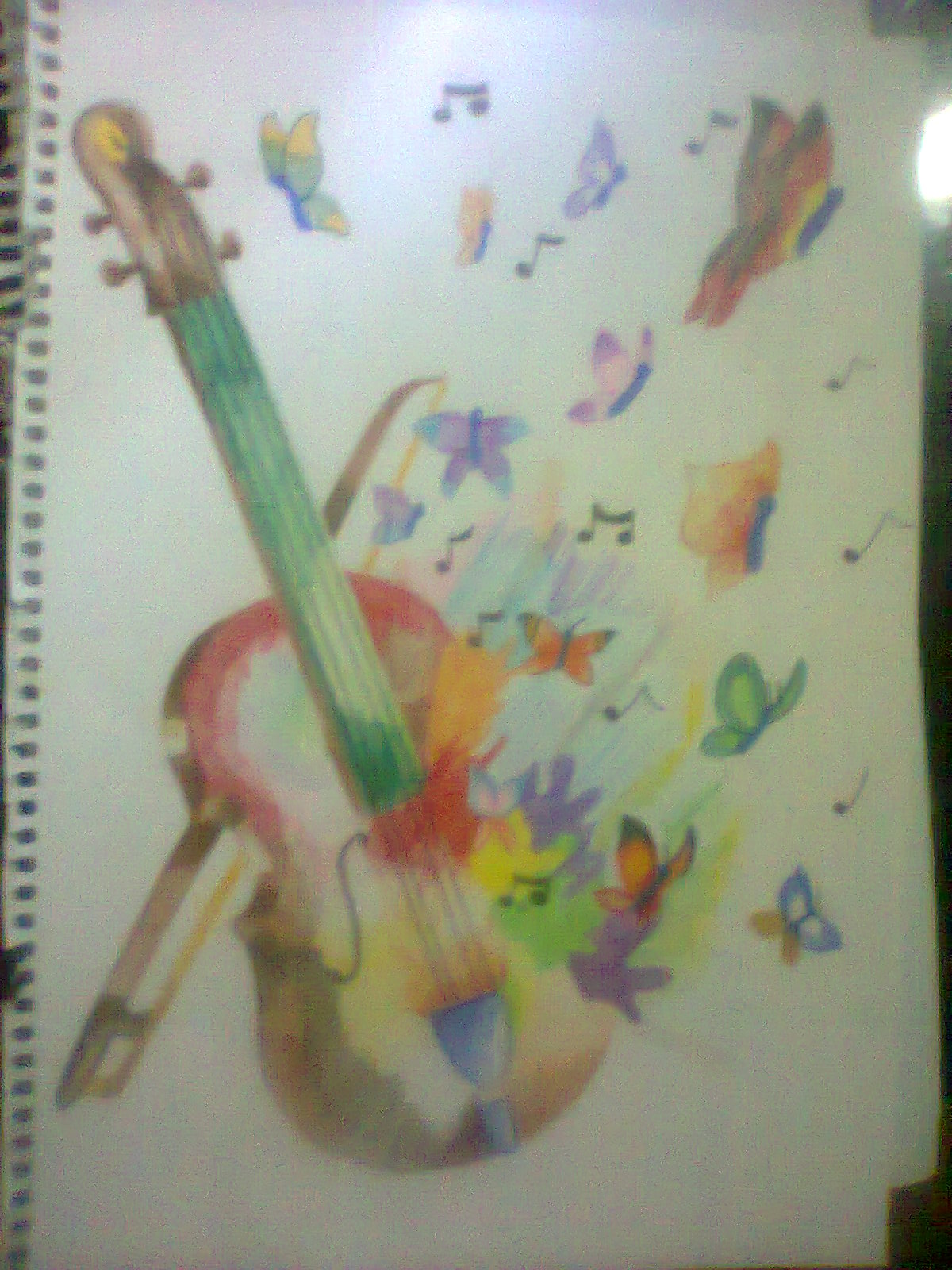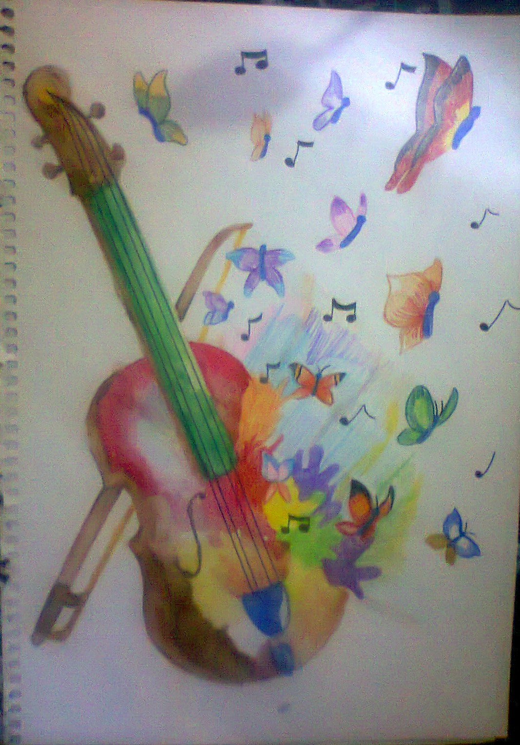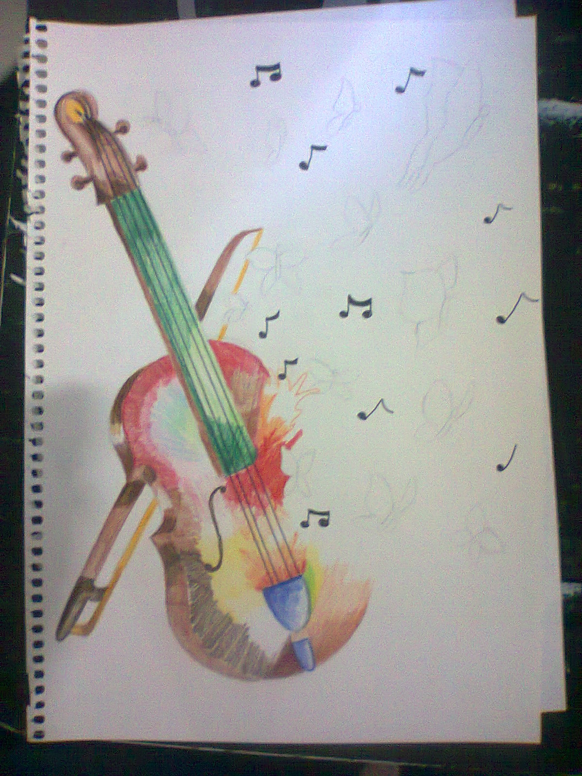 First of all I started making a pencil sketch which I was coloring, starting first with the violin