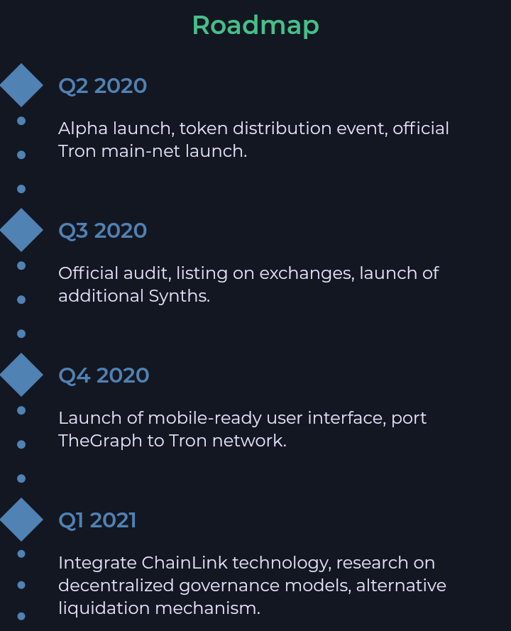 OIKOS is a platform for issuing synthetic assets based on Tron. It provides the ability to create in-network synthetic assets (Synths) that open access to other assets, tracking their real price.