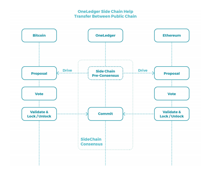 El ultimo mes el consenso publico, se da cuenta se solicita una transferencia entre cadenas, esta votada por los validadores de la cadena pública, si en ambas cadenas hay acuerdo se comprometerá, y el bloque finalizará en OneLedger.
