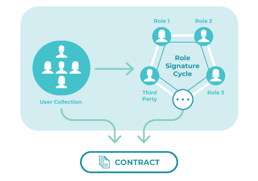 La primera está basada en los roles, el rol está vinculado con la identidad de los participantes, y cada función vinculada a un nodo, los contratos generados aquí, definen los roles y los comportamientos futuros.