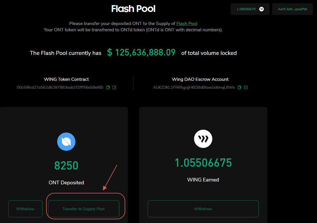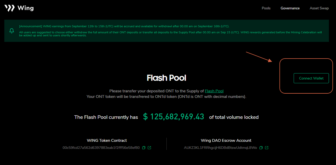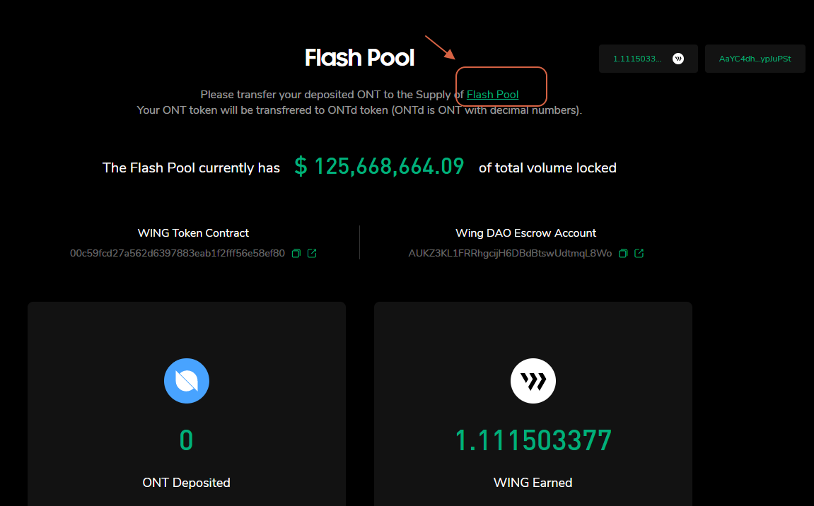 Official guide to connect ONTO wallet: https://medium.com/wingfinance/using-onto-to-mine-the-flash-pool-guide-73bdf6ad87a9