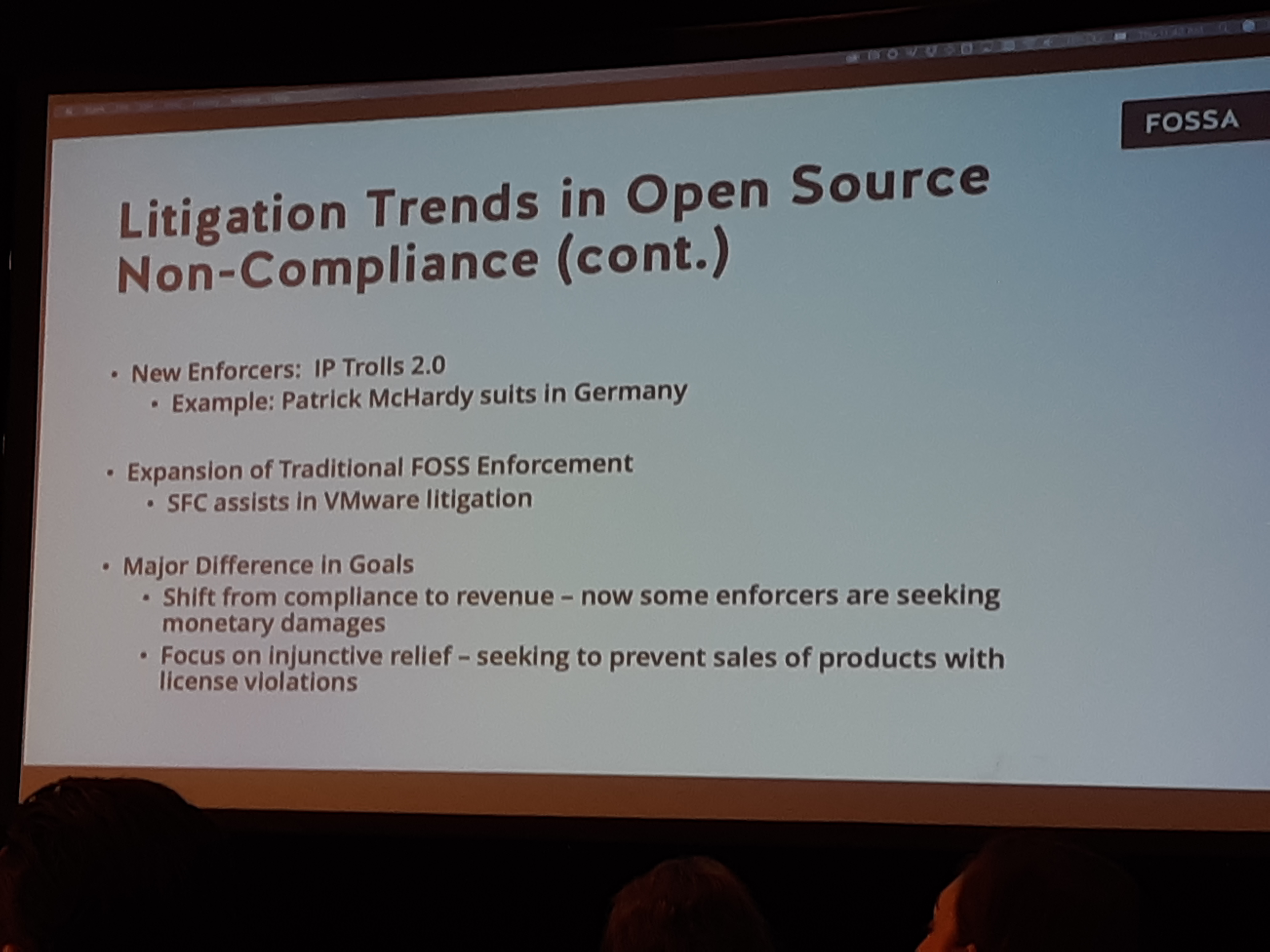 “Some of the more restrictive licenses know because you’re using open source, because they have these requirements, if you’re not compliant, there is a chance that you’re going to be the target of an action that can come from the open source software community,” Stevenson explained.