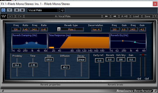 For the reverb of the voices I used the Mono/Stereo Reverb plugin of the WAVES with the Vocal Plate pre-set which is specifically designed to give a bit of depth to the voice.