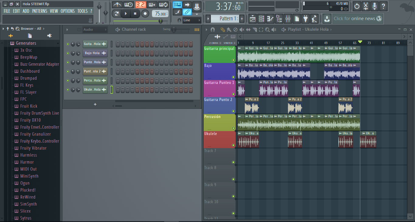 Para la ecualización, limitación, reverberación y masterización de los instrumentos utilicé el programa FL STUDIO 12.