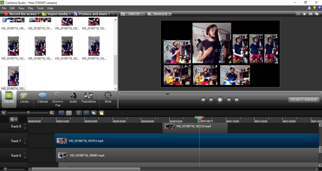 Para la mezcla de los vídeos utilicé un programa de la empresa TechSmith llamado Camtasia Studio 8. Para la grabación de los vídeos me grabé con la cámara frontal de mi celular marca BLU HD R2.