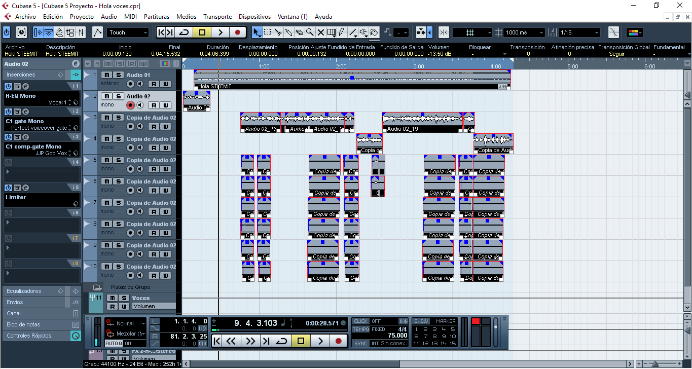 Esta semana decidí volver a grabar un gran tema original (versión acústico), por lo que decidí grabar varios instrumentos y voces como acostumbro con el programa de la empresa Steinberg llamado Cubase; entre la lista de instrumentos tengo: